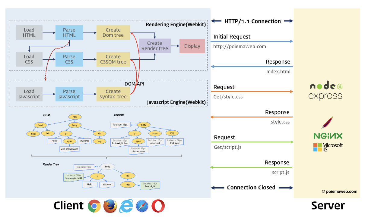 텍스트 파일로 만들어져 있는 웹문서를 브라우저에 렌더링하려면, 웹 문서를 브라우저가 이해할 수 있는 구조로 메모리에 올려야합니다. 브라우저의 렌더링 엔진은 웹 문서를 로드한 후, 파싱하여 웹 문서를 브라우저가 이해할 수 있는 구조로 구성하여, 메모리에 적재하는데 이를 DOM이라 한다.