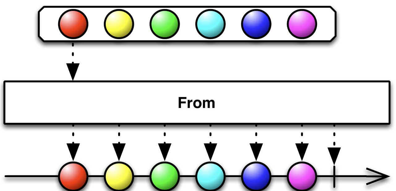 From : 오직 하나의 배열을 받고, 배열의 원소들을 순서대로 방출하는 Observable로 변환하다.
