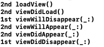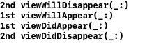 첫 번째 뷰가 사라진 후 두 번째 뷰가 보일 것 같지만, 실제로는 두 번째 뷰가 DidAppear로 보인 후 첫 번째 뷰의 DidDisappear가 호출되며 첫 번째 뷰가 완전히 사라지게 됩니다.