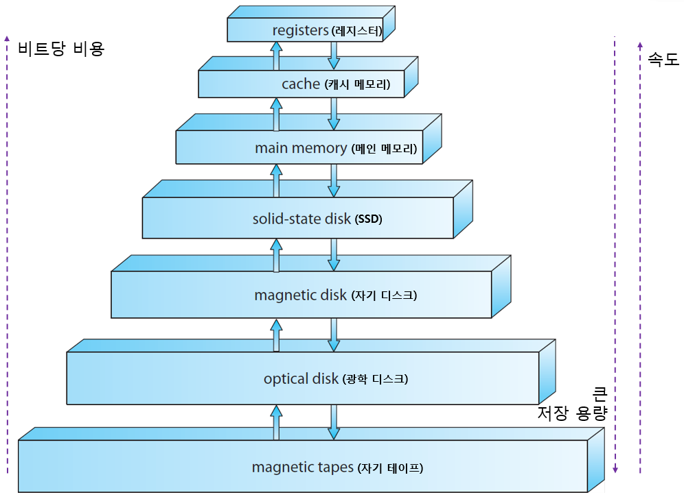 왜 이렇게 나눌까요? 속도는 빠를수록 비싸고 용량은 작아지니까, 효율적으로 자원을 활용하려고 계층을 만든 거예요.
