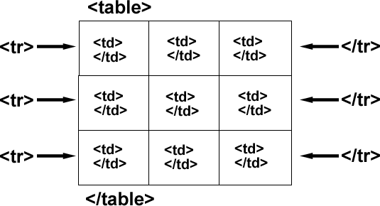 표(table)를 만들 때 사용하는 태그이다. 과거에는 테이블 태그를 사용하여 레이아웃을 구성하기도 하였으나 모던 웹에서는 주로 공간 분할 태그인 div 태그를 사용하여 레이아웃을 구성한다.