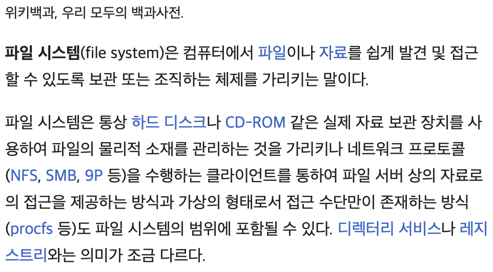 파일 시스템은 OS 가 저장 장치에 데이터를 쓰고, 읽고, 찾고, 관리하는 모든 방법을 정의한 규칙 이자 시스템입니다.