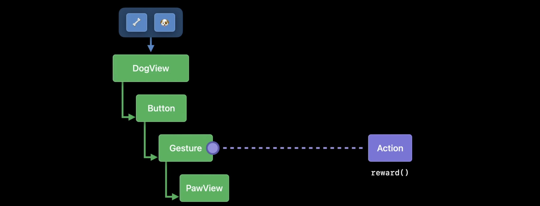 다이어그램을 보면 DogView만 의존성이 있는 유일한 View가 아닙니다. 왜냐하면, SwiftUI에서는 각 View가 자체 의존성 집합을 가질 수 있기 때문이죠.